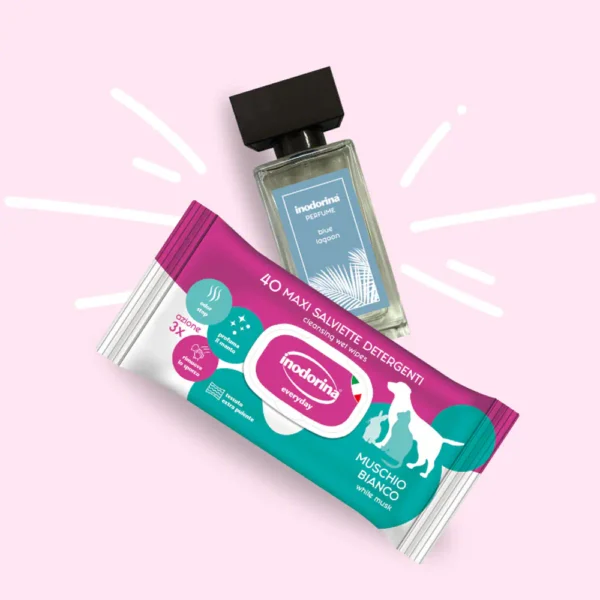 Il kit ideale per mantenere il tuo cane sempre fresco e profumato. Include un pacco di salviette umidificate detergenti con profumazione a scelta e un profumo per cani a scelta, delicato sulla pelle e pensato per rispettare l’olfatto degli animali. Perfetto per una pulizia rapida e una fragranza piacevole ogni giorno.