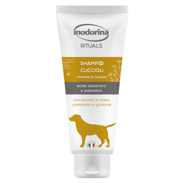 The Rituals Puppy Shampoo, damaged coats and sensitive skin, thanks to the presence of honey and chamomile extracts, It has a recognized relaxing and calming action. Contains honey extract, chamomile, glycerin, hyaluronic acid and prebiotic specific for puppies, damaged coats and very sensitive skin, hydrates and protects the skin.