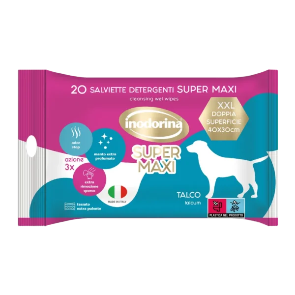 La speciale formula con tecnologia neutralizza odori aiuta a eliminare i cattivi odori, lasciando il pelo fresco, pulito e delicatamente profumato. Grazie al formato super maxi 40×30 cm, ogni salvietta offre una maggiore copertura ed efficacia, rendendo la pulizia pratica e veloce anche per cani di taglia grande.